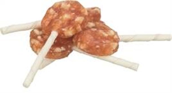 Deze lekkere snack bestaat uit een lolly van kip met kaas met een staafje van runderhuid. Nadat jouw hond heerlijk gesmikkeld heeft van de bovenkant, kan hij lekker kauwen op het stokje van runderhuid, wat ook nog eens helpt bij de verzorging van het gebit.